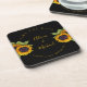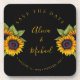 Casamento tradicional do país russo salve a porta copos quadrada de data com belos buquês de girassol e um guião de ouro de tendência em fundo preto. ++++++ Ideal para o seu verão ou outono caia no elegante jardim ao ar livre, celeiro de fazenda ou casamento no quintal. Personalize-o com os nomes da noiva e do noivo, a data do casamento e o lugar!