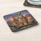 A coasters that features a striking Great Horned Owl, rendered in a rich, thick impasto oil painting style. The vibrant textures and warm sunset backdrop create a cozy, rustic atmosphere that is perfect for nature lovers and art enthusiasts alike.