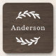 Esta elegante e personalizada montanha-russa monificada apresenta galhos de louros de folha que moldam um sobrenome da família. Um belo presente para recém-casados ou novos proprietários. Um fundo de grãos de madeira escura castanho-noz adiciona um olhar rústico texturizado ao design. O texto de serif branco clássico pode ser modificado via Personalizar.