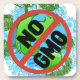 Uma Preocupação Global para o Ambientalista Verde Sustentável Conservacionista Preocupado e Consciente com a Mensagem SEM TRANSGÊNICOS e um Globo com a América do Norte e o topo da América do Sul com Árvores, pássaros, Pinguins, Ondas do Oceano, Redemoinhos e um Grande Símbolo de NÃO