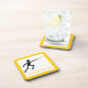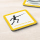 Porta copos de bebidas personalizadas com cerca de silhueta preta e esgrimida que apresenta um ícone de pictograma minimalista de uma silhueta preta de um encenador segurando sua espada e seu texto sobre fundo branco com borda amarela. O presente perfeito para o atleta ou amante da esgrima em sua vida. Veja muitas designs na nossa loja de presentes esportivos.
