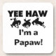 Yee Haw, eu sou uma camiseta Papuásia, canecas, cartões, adesivos, botões de anúncio, keepsakes de papá, e outros presentes de mamão com um cavalo de fivela e design de texto preto. Estes itens de roupa e presentes são perfeitos para avós pela primeira vez ou mamão temperado de uma nova chegada!