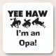 Yee Haw Eu sou uma camiseta Opa, canecas, cartões, adesivos, botões de anúncio, keepsakes opa, e outros presentes opa com um cavalo de entrelaçamento e design de texto preto ou branco. Estes itens de roupa de opa e presentes são perfeitos para avós pela primeira vez ou opas temperadas de uma nova chegada!