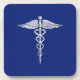 O cromo de prata simbólico como o design médico do símbolo do Caduceus apresentou aqui em um fundo dos azuis marinhos. Os cobras do caduceus estão projetados olhar como é feito do cromo. Bom para uma ocasião da graduação, uma indicação para sua profissão, ou para um presente com aquela o olhar médico seu está procurando.