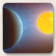 A concepção deste artista retrata o sistema de estrelas Kepler-10, localizado a cerca de 560 anos-luz perto das constelações de Cygnus e Lyra. Kepler descobriu dois planetas ao redor desta estrela. Kepler-10b é, até agora, o menor exoplaneta rochoso conhecido, ou planeta fora do nosso sistema solar (ponto escuro contra o sol amarelo). Kepler-10c é o objeto de primeiro plano maior.