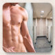 SlipperyJoe muscular sem camisa homem 6 maços abs ajustado fechadura física quarto chás artísticos público beige azulejos e talheres de chuveiro dodotes LGBTQIA removido sem desculpas disciplina inesquecível não enxerga