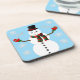 Es un beverage coaster de Hombre de nieve con la mision de llevar el deseo de que esta navidad reine la paz en su hogar.