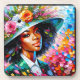Celebração de Primavera Season está a caminho. Esta é uma pintura acrílica de uma bela senhora em seu chapéu de Primavera com uma explosão de cores no início da manhã de domingo.