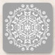 Esta mandala branca senta-se sobre uma cinza de fundo. Neutro, parece que pode pertencer a qualquer lugar. Parte da Coleção Mola Mandala.
