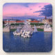 Sunset sobre fonte com escultura em Jardins de Belvedere em Viena, Áustria.