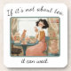 Suporte de plástico estilo retrô com uma mulher que ama chá saboreando seu chá, dois gatos por perto, cortinas de renda e um ditado encantador e atrevido para os amantes de chá.