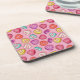 Conjunto de Suportes para Copos do Dia dos Namorados com fundo rosa e doces do dia dos namorados.