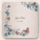Teal Silver Floral Copper Butterfly Tan Wedding beverage coaster. Unique, beautiful, modern design. Easy to be personalized. Font style, size and colors can be changed. Matching items available.