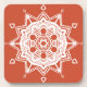 Esta mandala branca senta-se num fundo laranja escuro. As cores são criativas e quentes. Parte da Coleção Fenten Mandala.
