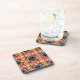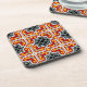 Servir suas bebidas nestas portas copos plásticas duras com parte traseira da cortiça com um design tradicional do azulejo de Barcelona. O fundo é um vermelho escuro.