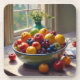 Porta-copo Tigela de fruta sentada sobre uma pintura de óleo