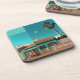 Foto colorida de uma cidade espanhola com um edifício tradicional, uma lua crescente e uma palmeira. Valencia, Alicante.