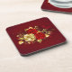 A composição de duas rosas vermelhas pintadas artisticamente e uma rosa ouro, decorada com ouro, folhas de joias sobre fundo texturizado.