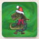 Parada Animal Festivo Tyrannosaurus Rex no design de Santa Hat mostra nosso fofo T-Rex vestindo um chapéu vermelho de Papai Noel em sua cabeça e em alguns dos produtos, o dino do fundo vestindo uma coroa oca com um arco vermelho brilhante sobre um fundo verde com nossa textura de assinatura. Nossa arte original de dinossauro foi pintada pelo ilustrador de nossas crianças talentosas Traci Van Wagoner. Nossa divertida arte de personagens de dinossauros faz presentes únicos para aqueles amantes de Natal na sua lista de presentes nesta temporada de festas que amam animais, dinossauros e dinossauros. Designs personalizados disponíveis.