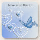 Uma borboleta e corações com notas musicais à deriva num fundo azul. Personalização de 100%. Clique no botão PERSONALIZAR para adicionar, mover, excluir, redimensionar ou alterar qualquer uma das fontes ou gráficos.