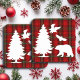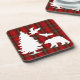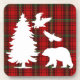 Um design elegante para o inverno com fundo de tartã vermelho, preto, verde e animais de floresta e árvore!