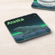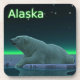 Um momento pacífico na longa noite árctica. Um Urso Polar repousa na borda de uma área aberta no gelo da matilha. As Luzes do Norte brilham à distância; estrelas brilhantes brilham sobre a cabeça. A leitura de texto "Alaska" aparece em verde e branco brilhantes. Os ursos polares estão ameaçados. Quanto tempo mais cenas como esta poderão ocorrer? Por favor, ajude a salvar os Ursos Polares da extinção.
