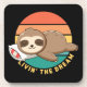 Esta design engraçada apresenta uma preguiça-dormindo feliz contra um fundo retrô do pôr do sol e a citação, "Vivendo o sonho."