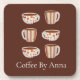 features coffee cup design on coasters