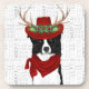 Porta copos divertida para a pessoa que ama o seu "Border Collie". Este veste um chapéu de vaqueiro com Holly e chifres e um bandana vermelho para uma aproximação na moda na época de férias, e se senta sobre um fundo WOOF desvanecido para decorar sua casa ou escritório com alegria sazonal de amante de animais de estimação.