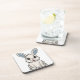 Vector illustration of a smiling white bunny with large, sweet eyes, long, blue ears, and a pink nose, in a cartoon style, on a black background. Suitable as a logo or mascot.
