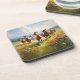 A coaster image for cowgirls, cowboys and western art lovers, a gorgeous painting of wild horses running in a grassy field of wildflowers.