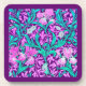 Porta copos em William Morris, Art Nouveau, impressão têxtil de irises e folhas, melhorada digitalmente e colorida, em orquídea macia e turquesa, sobre fundo ametista roxo