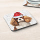 Porta copos divertida para a pessoa que ama o rei cavaleiro Charles Spaniel. Este veste um chapéu vermelho de Papai Noel, sentado orgulhosamente sobre um fundo desbotado do WOOF para decorar sua casa ou escritório com alegria sazonal de amante de animais de estimação.