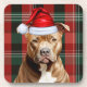 Porta copos divertida para a pessoa que ama o Pitbull. Este veste um chapéu de Papai Noel para uma aproximação na moda na época de feriados, e se senta em um fundo festivo vermelho e xadrez verde para decorar sua casa ou escritório com alegria sazonal de amante de animais de estimação.
