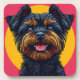 Trabalho de arte digital de um Yorkshire Terrier alegre, mostrando cores vibrantes e contornos ousados. Perfeito para designs de animais, projetos relacionados a animais de estimação ou obras decorativas enfatizando felicidade e energia.