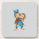 "This charming and cheerful cartoon design features two monkeys (Zina and Mimo) in a playful moment: a monkey wearing blue overalls is giving a piggyback ride to a monkey wearing a blue bow with a daisy flower. Both monkeys have bright, happy expressions, and the overall style is reminiscent of classic, friendly children's animation. This design is versatile for a range of products aimed at children, families, or those who appreciate cute and nostalgic characters. Imagine it on children's clothing, school supplies, nursery decor, or lighthearted family-themed merchandise."