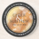 Celebre o 7, 22º ou 49º aniversário de casamento com esta porta copos comemorativa de arenito! As inscrições esbeltas, em preto e branco, com um confete hexagonal sobre um fundo de folha de cobre acrescentam um toque memorável para esta ocasião especial e para um marco (extraordinário). Personalize com os nomes de casais felizes e adicione datas para seu aniversário de cobre. O texto de enrolamento nas esferas da porta copos pode ser personalizado com mensagens de parabéns especiais, ou usado como está. Design © W.H. Sim. Mais informações em zazzle.com/expressionsoccasions