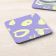 Esta porta copos acrílica moderna é projetada com manchas amarelas esbranquiçadas e gestos gráficos sobre um fundo de lavanda vibrante e comum.
