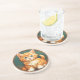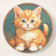 Porta copos Sandstone com um gato laranja no estilo de Alphonse Mucha! Este gatinho adorável com olhos verdes é enquadrado pelas folhas do outono. Um presente maravilhoso para amantes de gatos e colecionadores de Art Nouveau!