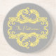 A Porta copos elegante e sofisticada do Damasco Chic, com fundo de cinza macio e um ornamento na moda-damasco, floresce em amarelo. Esta design moderna é fácil de personalizar com o seu próprio texto. Clique em "Personalizar" para encontrar mais opções de personalização.