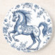 Um veado de azure, capturado de médio, incorpora graça floral neste azulejo cerâmico. Padrões florais insípidos, que lembram flores delicadas, atravessam o corpo do cavalo, atravessam o homem e a cauda, estendendo-se à sua sela ou arnês decorativos. O artista retrata habilmente os poderosos músculos e movimentos fluidos do animal. Uma borda de designs florais detalhados nos mesmos quadros de matiz azul profundo da imagem. A composição equilibrada e uma perspectiva levemente elevada enfatizam a postura dinâmica do cavalo. As cores muda e a iluminação suave criam uma atmosfera serena e vintage, evocativa do artesanato clássico do azulejo. Este design emprestado meticulosamente irradia beleza e artista clássicas.