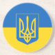 Porta copos de Sandstone com a bandeira da Ucrânia, uma bandeira azul e amarela com o casaco de armas ucraniano (emblem) com um tridente no centro