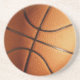 A imagem mostra uma bola de basquete tradicional laranja com bolhas