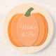 Esta incrível porta copos de arenito apresenta uma imagem de arte digital de uma abóbora laranja fofa com 3 tons diferentes de laranja ficando mais escuros em direção às bordas da abóbora. Há um pé verde anexado ao topo. O design é um fazer neutro em relação ao gênero, é um design perfeito para celebrar um menino ou uma menina, especialmente no Dia de Ação de Graças. Há texto personalizado para que você possa personalizar este design.