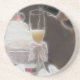Bolo de casamento no fundo e champanhe num copo. Celebre e salve sua mobília! :-
