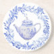 Este porta-copos redondo tem um design monocromático com um conjunto de chá azul e branco rodeado por uma grinalda de folhas azuis. Este porta-copos seria perfeito para distribuir como lembranças em uma festa de chá, festa de aniversário, chá de bebê ou almoço de noiva.