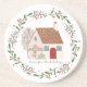 Acalme-se com esta adorável porta copos de cozinha sazonal. A porta copos tem uma casa com o texto para os feriados. Ao redor da casa está uma bonito coroa verde. Faz um excelente adicional ao decoro de Natal da sua família e também faz um presente de Natal excelente!