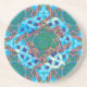 Design da tartaruga de mar em um teste padrão celta do knotwork contra um teste padrão azul do knotwork do "mar".
