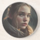A painting of a girl in a circle, in the style of realistic hyper-detailed rendering, detailed character illustration