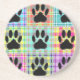 Uma colcha colorida com padrão de cachorro. Listras e quadrados em muitas cores. Imagem totalmente digital. Porta-copos personalizados. Ideia de presente para amantes de cachorros.